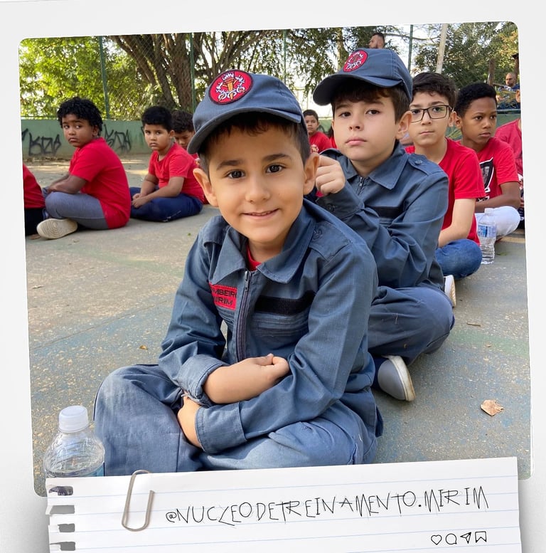 Meu filho adora o curso! Ele se sente mais confiante e responsável após as aulas de bombeiro mirim.